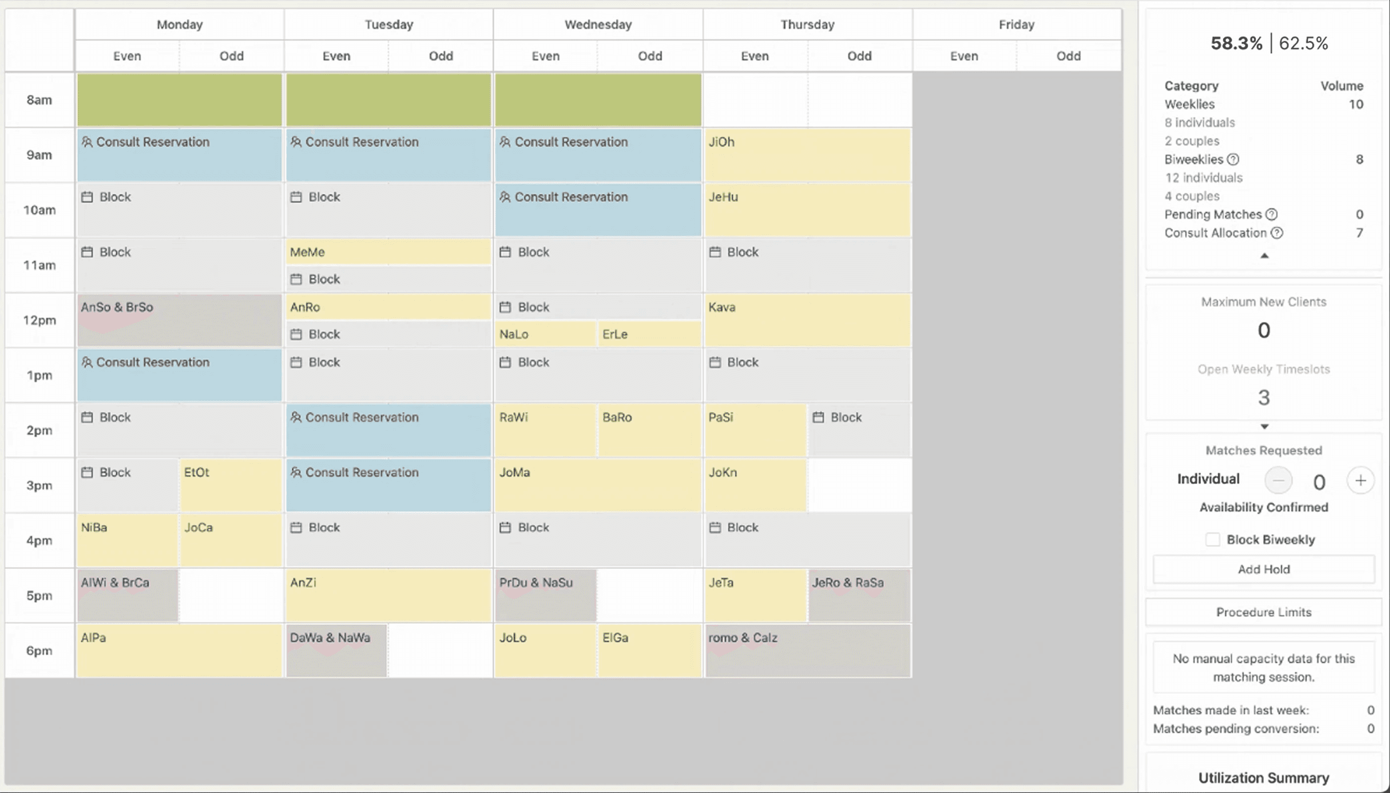 Full-time clinicians working 40 hours a week faced the greatest challenges in managing their availability, balancing company and team responsibilities alongside client care. To address this, we focused our initial designs on their needs, then scaled the solution to support other clinical roles.